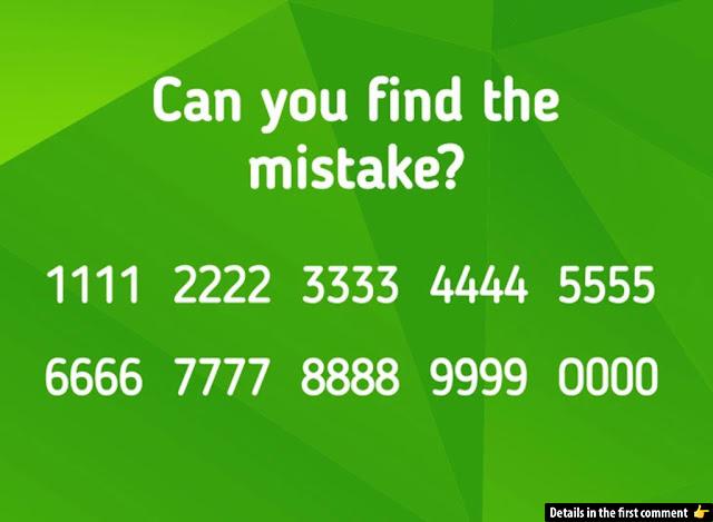 Puzzles are an excellent way to keep our minds sharp and agile. Here’s a fun challenge: Look at the image above and spot the mistake. At first glance, it seems like a sequence of repeating numbers. However, there’s a tiny, sneaky detail that’s wrong. Can you find it? Only a few people can solve this within seconds. Give it a try and see how sharp your eyes are!