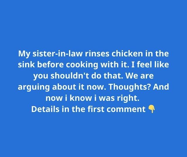 The seemingly simple act of rinsing raw chicken has divided many households. In the viral image above, a person reveals an argument with their sister-in-law about rinsing…